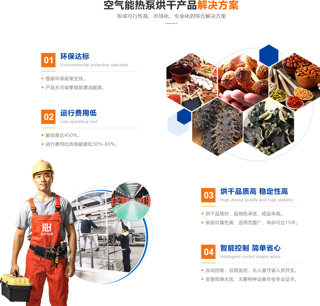山東海華能源科技有限公司全力致力于新能源技術,以節能環保事業為企業的發展方向;集空氣能熱泵烘干產品研發、生產制造、營銷及綜合解決方案服務于一體的國際化企業。公司擁有1.5萬平方米2個產業園,擁有完整的熱泵烘干產品核心產業鏈,擁有核心部件換熱器的鈑金生產工廠,規模居同類企業前列。同時公司擁有“超低溫,超高溫”核心技術,“超低溫-30°c以下穩定運行,超高出風溫度可達99°c!”始終堅持以打造高品質產品和行業解決方案為首位,以客戶服務為中心為合作商提供支持,攜手共進!